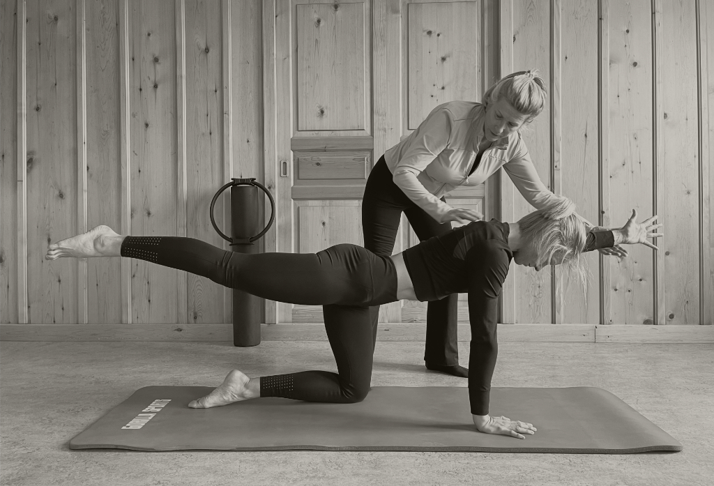Hello, I’m Bernadette, and I’ve been teaching Pilates since 2006. I help people recover from injuries, improve their posture and flexibility, tone and strengthen their bodies, and work on their breathing patterns. Here in Verbier, there is the added benefit of exercising at 1,500 meters.